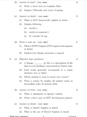 Saurashtra University M Sc IT Semester 3 Paper of Django 2017